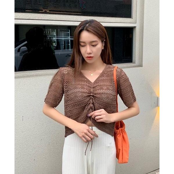 韓国 ファッション Tシャツ レディース おしゃれ 今だけ限定15 Offクーポン発行中 半袖 シャーリングvネックニットtシャツ